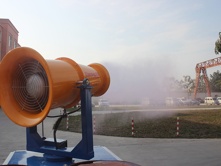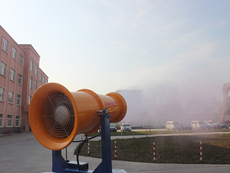 廣東梅州世鵬機械廠購買30米霧炮機用于廠房降溫消毒試機現場