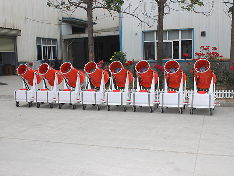 客戶為江蘇蘇州的某一電子廠,由于生產的設備需防靜電,就在鄭通霧炮機廠家購置了以下手推移動式霧炮機。