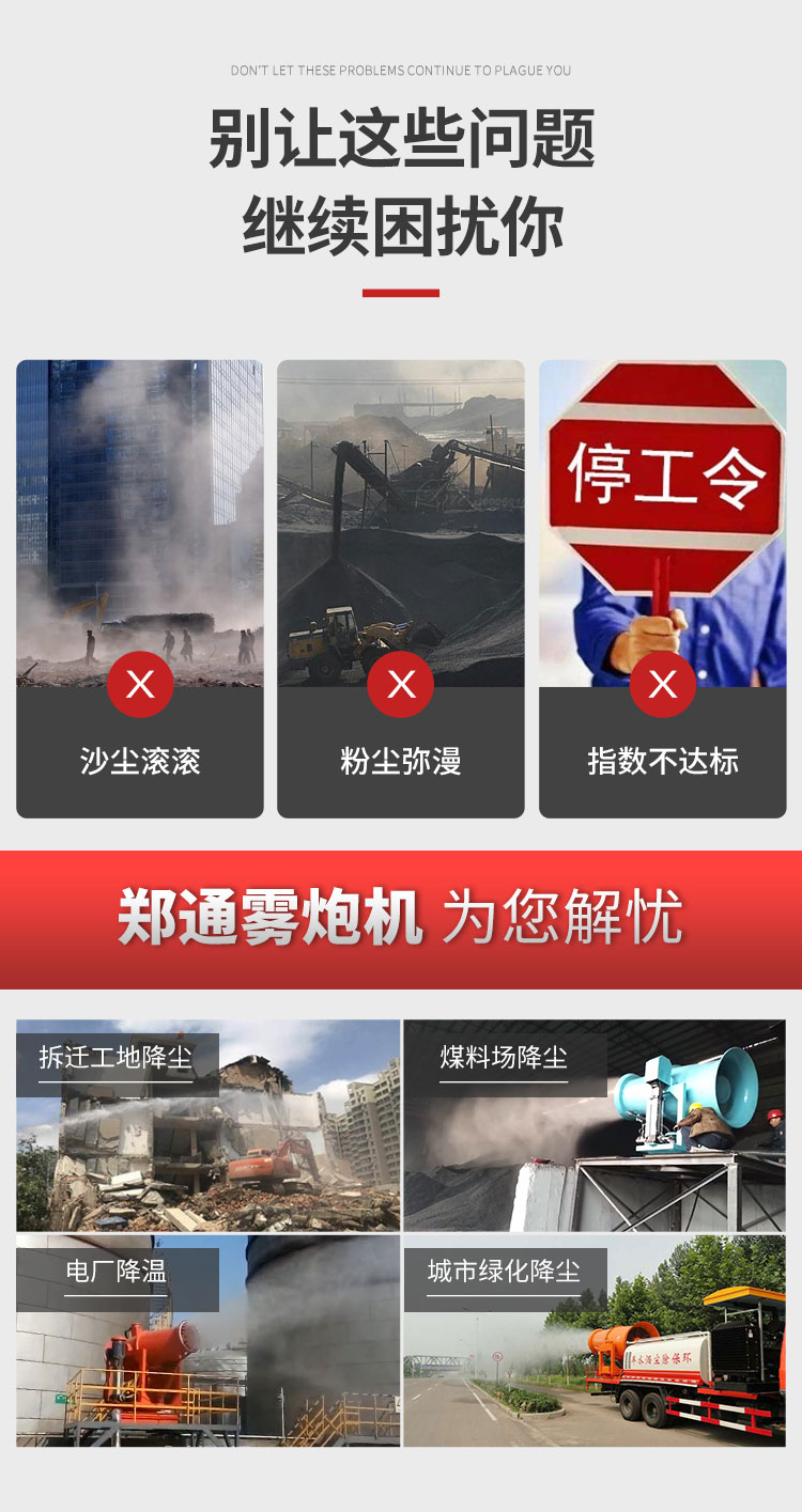主要用途:用于煤礦場(chǎng)、城市拆遷工地、冶金鋼鐵企業(yè)、采礦區(qū)域、煤化工企業(yè)、水泥廠、火力發(fā)電廠、物料和礦產(chǎn)品露天堆放廠、混凝土處理廠、垃圾堆放場(chǎng)、垃圾焚燒廠、沙廠、干式物料倉庫、露天爆破、重度粉塵區(qū)域。
