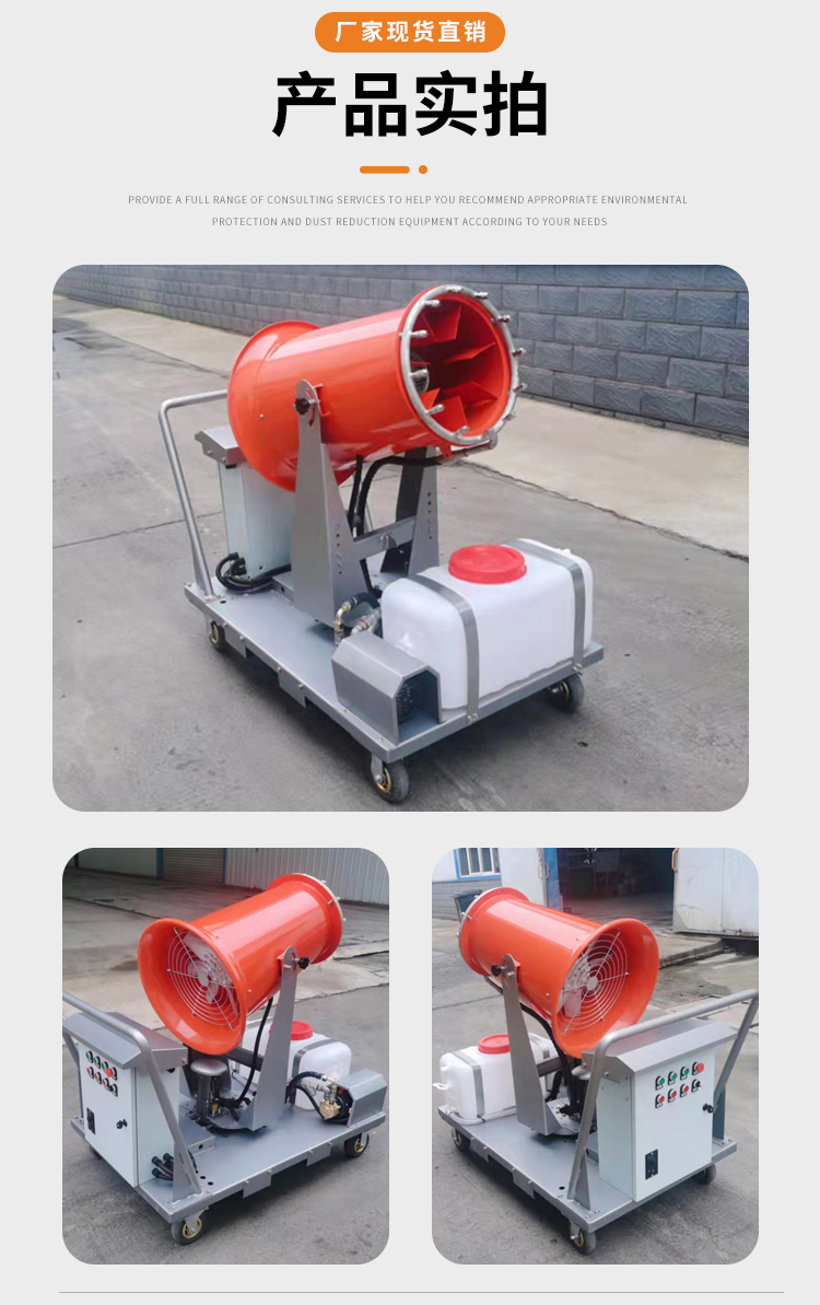產(chǎn)品特點:手推移動式霧炮機降塵速度快、機結(jié)構(gòu)緊湊、布局合理、移動靈活、構(gòu)造簡單易維護。