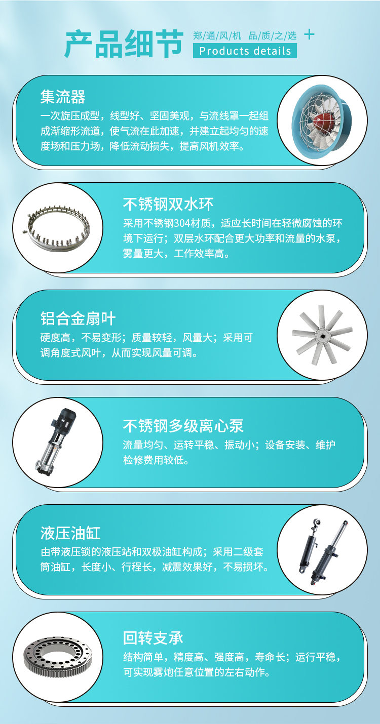 產(chǎn)品特點(diǎn):90米遠(yuǎn)程霧炮機(jī)動(dòng)力強(qiáng)、射程遠(yuǎn)、覆蓋廣泛、可實(shí)現(xiàn)精量噴霧;工作效能高、噴霧加濕更快,能迅速降溫抑塵;配件驅(qū)動(dòng)可靈活定制,操作便捷,靈活方便。