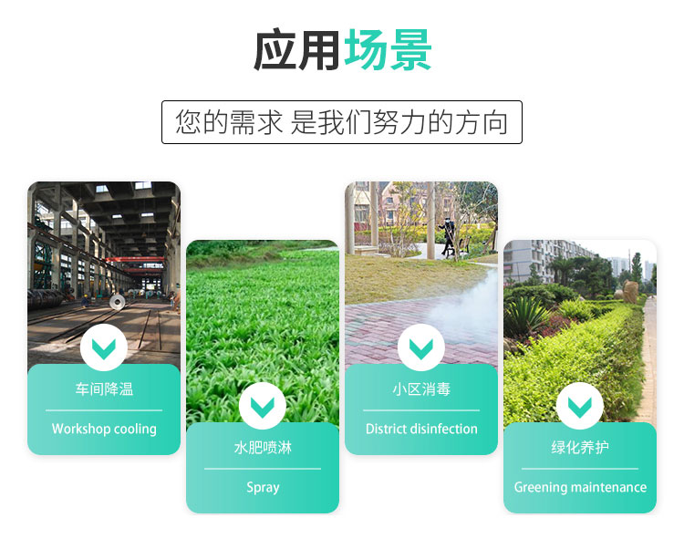 車間通風降溫、植被養護澆水加濕、垃圾站除異味、植物作物水肥藥物噴淋等。