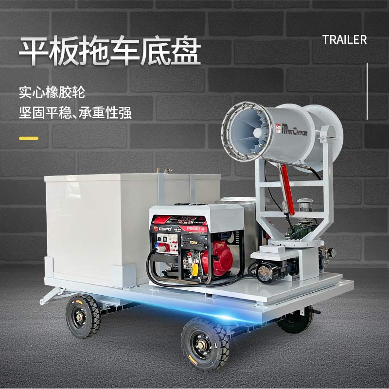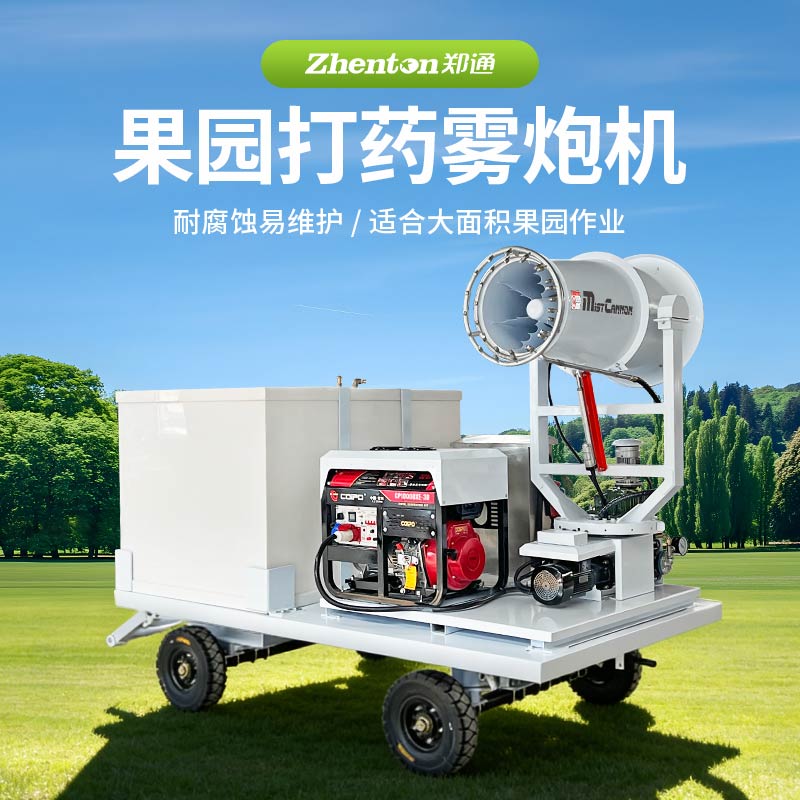產品特點:鄭通果園打藥霧炮機專為大面積果園、林地及煤棚降塵等場景設計,兼具耐腐蝕、易維護、移動靈活等優勢。設備采用平板拖車底盤+實心橡膠輪,承重強、行駛穩;配備大容量密封水箱,抗藥劑腐蝕,續航持久。適用于蘋果園噴藥、桉樹防治、工業降塵等多種環境廠家支持專業定制。